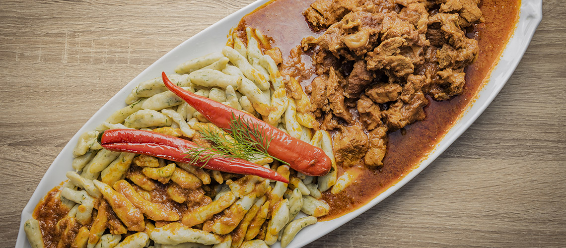 Egy bográcsban olajon hagymát kezdünk párolni. Szeletelünk bele erős paprika karikákat is. Mikor a hagyma megpuhult, hozzáadjuk először a darabolt borjút, sózzuk. Mikor a borjú levet eresztett, hozzátesszük a bárányhúst is. Ízesítjük őrölt köménymaggal és babérlevéllel. Mikor félig megfőtt, hozzáöntjük a vörösbort. A végén sűrített paradicsomot is teszünk bele. Lassú tűzön, de “lármásan” készre főzzük.