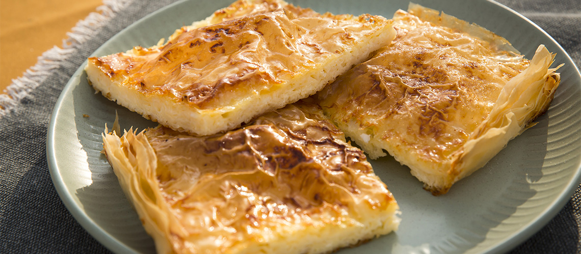 Egy tepsit kibélelünk 4–5 réteslappal. A lapok széleit vagy visszahajtogatjuk, vagy kilógatjuk a tepsiből.