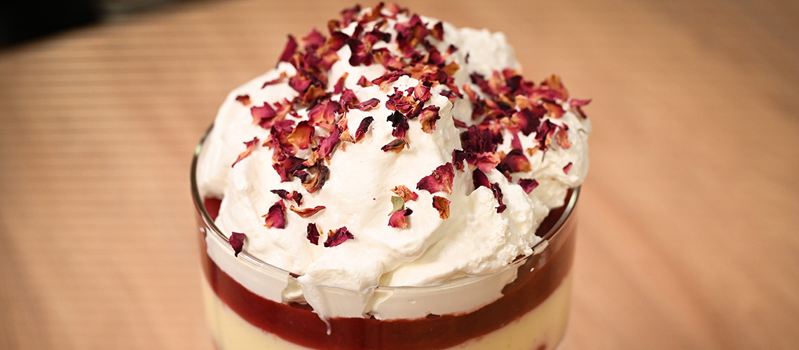 Tegyünk 750 g fagyasztott nyári gyümölcsöt egy lábasba 200 g porcukorral és 1 liter vízzel, és forraljuk lassú tűzön. 2 percig főzzük, majd kikanalazunk 6 evőkanál gyümölcsöt és 150 ml gyümölcslevet. A maradék gyümölcsöt tovább főzzük, kb. 5 percig. Közben 9 lap zselatint hideg vízbe áztatunk, hogy megpuhuljon. A megfőtt gyümölcsöt botmixerrel pépesítjük, majd szitán átszűrjük egy nagy tálba, és átnyomkodjuk a pépet, hogy csak a héja és a magvak maradjanak, ezeket kidobjuk, a folyadékot félretesszük. A zselatinból kinyomkodjuk a felesleges vizet, az átszűrt gyümölcsléhez adjuk és feloldjuk. Hagyjuk kihűlni, majd tegyük a hűtőbe, amíg majdnem megdermed. Elkészítjük a pudingot 75 g pudingporból, 1,2 liter tejből és 50 g porcukorral, hogy igazán sűrű krémet kapjunk. Letakarjuk nedves sütőpapírral, amíg lehűl. A babapiskótát egy nagyobb üvegtál aljára tördeljük, ráöntjük a félretett gyümölcsöt és levet, valamint a sherryt. Ráöntjük a sűrű pudingréteget, kicsit hagyjuk bőrösödni, majd óvatosan rákanalazzuk a szintén hideg zselét és a hűtőbe tesszük fogyasztásig. A habtejszínt, 1 teáskanál vaníliakivonattal és 2 ek. porcukorral habbá verjük és a trfile tetejére kanalazzuk, vagy nyomózsákból kinyomjuk.