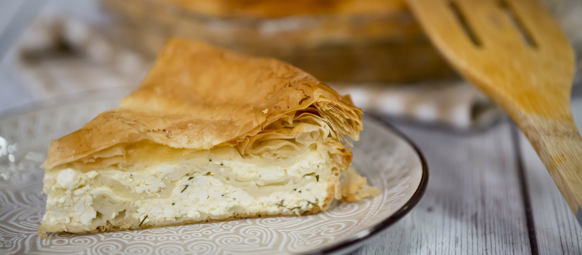 A töltelékhez összekeverjük a túrót, a tejfölt, a tojást. Sózzuk és aprított kaporra ízesítjük. A vajat a vízzel felmelegítjük és belekeverjük a sütőport. Egy sütőtál (kör alakú) alját megkenjük vajjal, majd belefektetünk 3 réteslapot, majd erre teszük ismét 3 lapot, kicsit meggyűrve, és meglocsoljuk a sütőporos keverékkel. Erre jön a túrótöltelék fele, majd újabb 3 réteslap meggyűrve, meglocsolva. Ismét túró, és a gyűrőtt lapok locsolva.