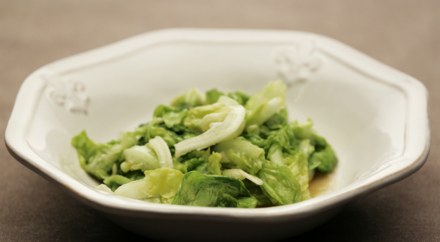 A salátaleveleket jól megmossuk, ízlés szerint megsózzuk, és kézzel jól összedolgozzuk. 15 perc múlva leöntjük róla a vizet, olívaolajjal és vörösborecettel fűszerezzük.