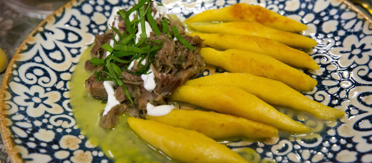 A formázott, előkészített sertés császáthúst, a belső, húsos oldalán sóval, pácsóval, borssal, vágott fokhagymával, frissen vágott petrezselyemzölddel és rozmaringgal ízesítem. Bőrös oldalával kifelé feltekerem és azért, hogy beférjen a háztartási sütőbe, félbevágva hurokkötözéssel formázom. 180 fokos sütőben 2 órán keresztül sötöm, majd feltekerem a hőmérsékletet és 250 fokon, kb 20 percig ropogósítom. A porchetta szeletekhez salátát készítek. Jégsalátát tépkedek, szárított paradicsom pácolajához étolajat, fehér balzsamecetet, mustárt, sót, borsot és porcukrot keverek. Tálalás előtt a jégsalátához szárított paradicsomot, olíva bogyót szeletelt lilahagymát, és az öntetet keverem. A hideg hússzeleteknek a salátával megágyazva szervírozom.