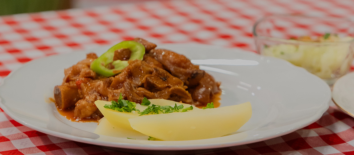 Ezután következhet a krumpli: hámozd meg, és vágd hosszúkás, vastag cikkelyekre, majd főzd meg sós vízben. A kész pörkölttel összekeverve vagy külön tálald. Az igazi körömpörkölt kenyérrel és savanyúsággal tálalva lesz tökéletes!
