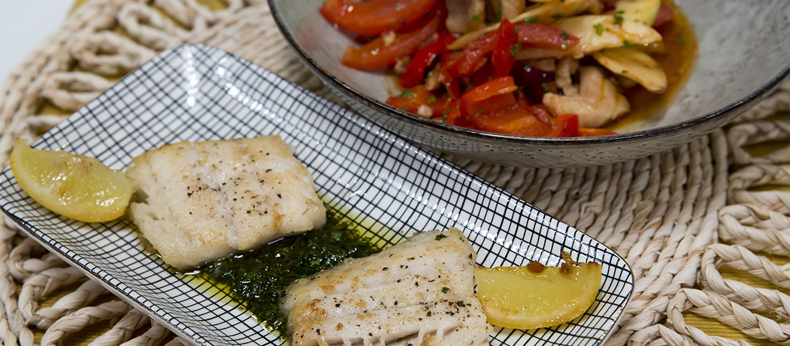 A fogasfilét sós vízben rövid idő alatt megfőzzük. A paprikákat, paradicsomot, lilahagymát, almát egyforma darabokra vágva hirtelen kevés olajon külön-külön megpirítjuk. Az ecetet cukorral, citromlével, sóval, borssal, őrölt köménnyel, fűszerpaprikával elkeverjük, kevés vízzel felöntjük, majd a halat és a zöldségeket beleforgatjuk az öntetbe.