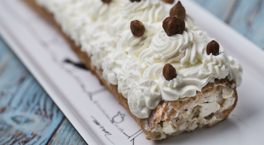 A tojások fehérjéből a sóval kemény habot verünk. Egy tálban összekeverjük a mogyorót a finomliszttel, és a keveréket óvatosan a sűrű habba forgatjuk. A tepsit sütőpapírral kibéleljük, bekenjük olajjal, és egyenletesen elterítjük rajta a tésztát. Rászitáljuk a porcukrot, és 220 °C fokra előmelegített sütőben pontosan 7 percig sütjük. Miután kivettük a sütőből, pár percet pihentessük a tésztát. Előkészítünk egy tiszta sütőpapírt, ráborítjuk a tésztát, és lehúzzuk a papírt az aljáról. Ezután a tekercset feltekerjük és hagyjuk kihűlni. A tejszínekből a habfixálókkal habot verünk, a tekercset kitekerjük, bekenjük (megszórhatjuk őrölt, vagy egész mogyoróval) és feltekerjük. A tekercset díszíthetjük tejszínhabbal és mogyoróval.