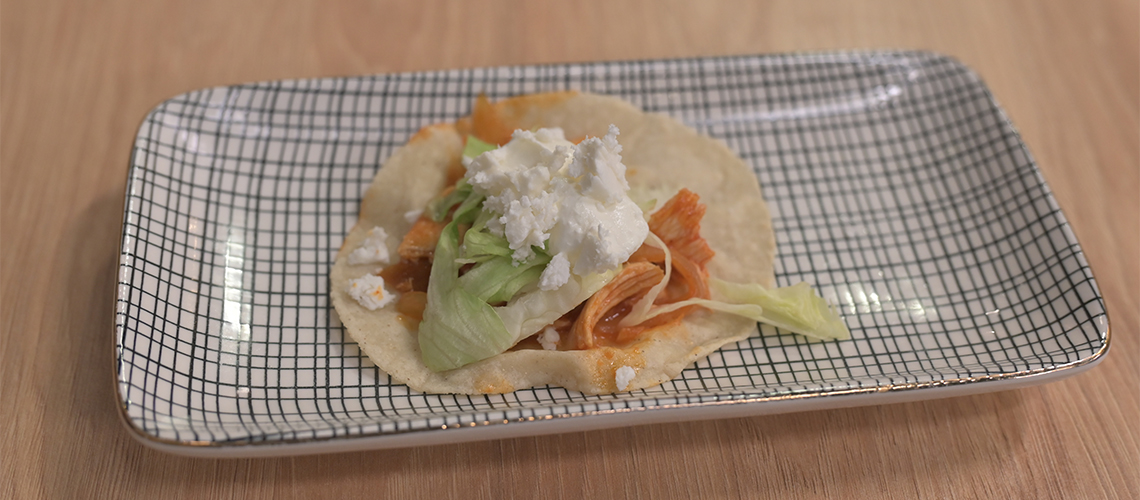 Elkészítés: Helyezze a csirkemelleket egy kis edénybe 1/2 hagymával, sóval és az oregánóval együtt. Öntsük fel vízzel és adjunk hozzá sót. Forraljuk fel nagy lángon, majd csökkentsük a hőt alacsonyra, és pároljuk, amíg meg nem puhul, körülbelül 20-25 percig. Hagyjuk kissé kihűlni, és aprítsuk fel a csirkét. Keverje össze a paradicsomot, a hagyma 1/4-ét, a fokhagymát, a chipotle paprikát, a sót, a borsot és a vizet vagy a húslevest. A hagymát olajon 5-7 percig pároljuk, vagy amíg megpuhul. Nem szabad túlságosan karamellizáltnak lenniük. Hozzáadjuk a turmixolt keveréket és a babérlevelet, és 3-5 percig főzzük. Ízlés szerint sózzuk, borsozzuk, és jól összekeverjük. Hozzáadjuk az apróra vágott csirkét, és további 5-8 percig főzzük. Ha megfőtt, vegye ki a babérlevelet, és tálalja tortillában tacoként, vagy süsse aranybarnára a tortillákat, és tálalja tostadaként. Díszítsük salátával, tejföllel és sajttal.