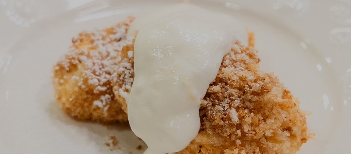 • Közben egy serpenyőben a morzsához felolvasztjuk a vajat, és azon sötét aranybarnára megpirítjuk a morzsát. A kifőtt gombócokat ebbe szűrjük óvatosan, és rázogatva beborítjuk a morzsával.