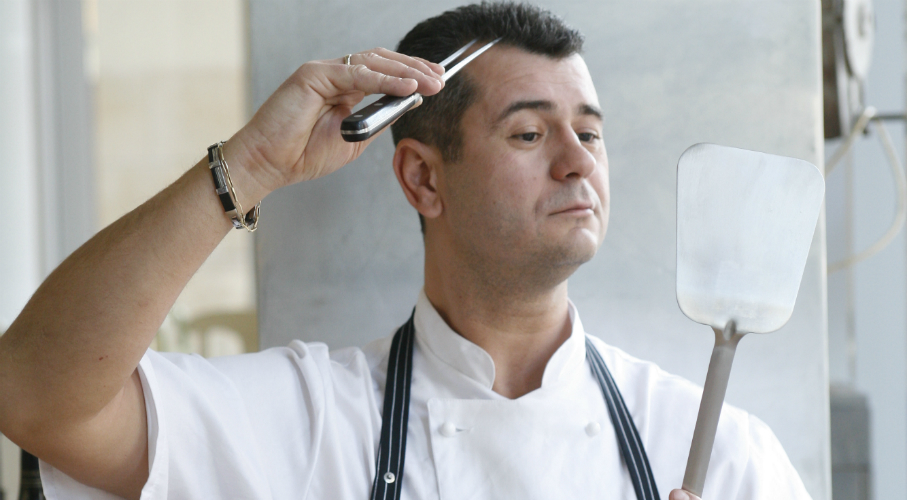 A paradicsomokat leforrázzuk és lehúzzuk a héjukat. Felcikkezzük és a csumáját eltávolítva a hús alaplében, sóval, borssal pár perc alatt megfőzzük. Belerakjuk a friss, vágott petrezselymet és bazsalikomot, 6-7 percig forraljuk, majd a tejszínnel még 1-2 percig forraljuk. Alaposan leturmixoljuk. A halványító zellert vékony csíkokra vágjuk, olívaolajon lepirítjuk, majd hozzákeverjük a megfőzött jázmin rizst. A halat sózzuk, borsozzuk, és olívaolajban hirtelen mindkét felét pirosra sütjük. Mellette személyenként egy fél paradicsomot és egy karika padlizsánt pirítunk.