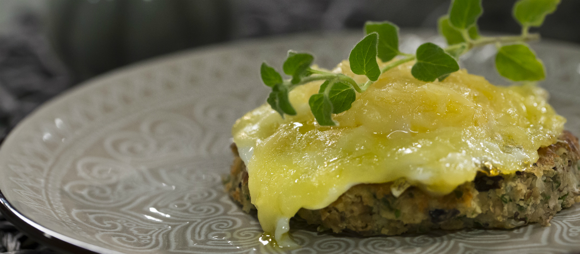 A főtt, szárazbabot alaposan összetörjük. Finomra vágott vöröshagymával, bazsalikommal, petrezselyemmel, oregánóval és egy darab tojással alaposan összedolgozzuk. Sózzuk, borsozzuk. Ha kell, kevés liszttel tömörítjük. Lepényeket formázunk belőle és kevés olajon ropogósra sütjük. Ezidő alatt megsütjük a tükörtojásokat úgy, hogy félidőben megfordítjuk, így mindkét fele megsül. Rátesszük a pogácsára és reszelt sajttal szórjuk.