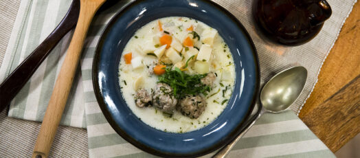 Húsgombócos erdélyi csorbaleves medvehagymával