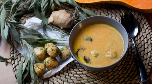 Sütőtök Krémleves Zsályás Maceszgombóccal