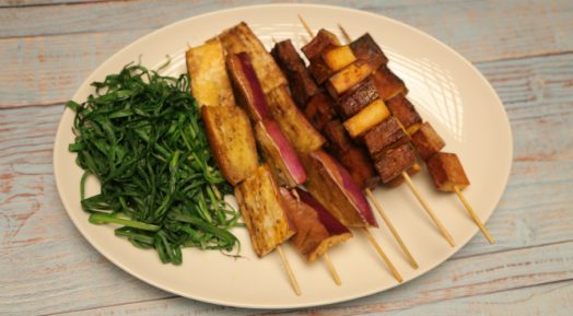 Tofu És Kígyópadlizsán Nyársak Kínai Hagymával
