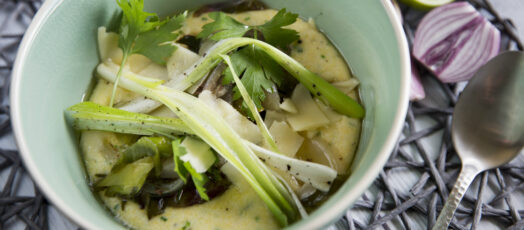 Sült csirke panko morzsában thai salátával, mangóval és fűszeres káposztával