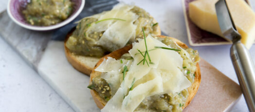 Padlizsánkrém pirítóssal és fokhagyma paprika concasseval