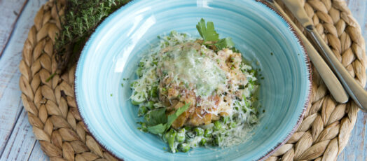 Borjúfasírt és friss borsósaláta
