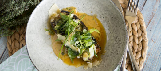 Grillezett padlizsán arab fűszerekkel, parmezánnal és Bernaise-mártással