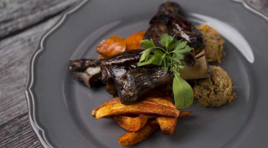 A báránycsülköt lehetőség szerint egy éjszakára vörösborba áztatjuk. Egy tepsibe kevés olajat öntünk, a báránycsülköket alaposan sózzuk, borsozzuk. Beletesszük a tepsibe, majd mellédarabolunk egy nagyobb fej vöröshagymát, illetve a sárgarépát. Hozzáadjuk a babérlevelet, felöntjük kevés borral, majd fedő alatt, 160 fokos sütőben 1,5 órán keresztül sütjük. Mikor megpuhult, a fedőt vagy fóliát levéve róla magasabb hőfokon, 15-20 perc alatt rápirítunk. A finomra vágott vöröshagymát olvasztott vajban megpároljuk. Hozzáadjuk az apróra darabolt aszalt barackot, sózzuk, majd borssal és a finomra vágott zsályával, kakukkfűvel, petrezselyemmel fűszerezzük. Megszórjuk a zsemlemorzsával, átforrósítjuk, majd a felvert tojással összeforgatjuk. Kis halmokat formázunk belőle és forró sütőben néhány perc alatt megsütjük. Ezt kínáljuk a bárány mellé, illetve a sült sárgarépát, esetleg cikkekre vágott fűszeres sült krumplit.