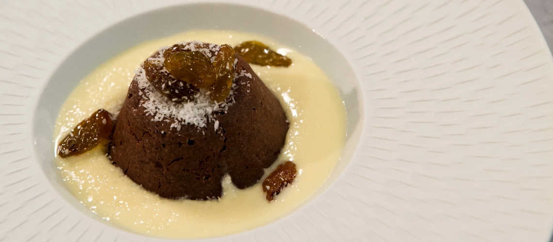 Az így kapott csokoládé krémet egy előre kivajazott szuflé formába öntjük, majd a sütőbe tesszük néhány percre.
