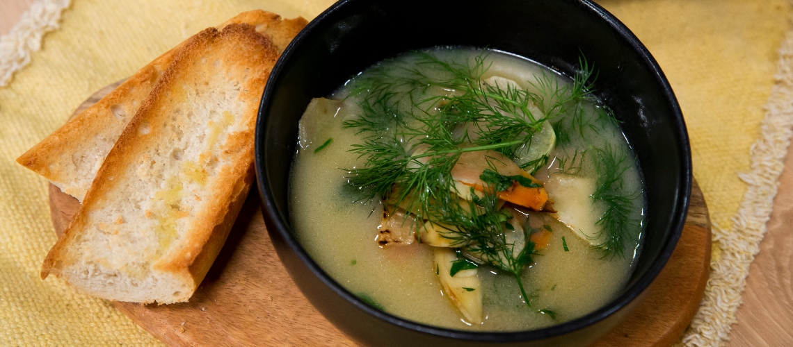 Alaplét készítünk egy filézett pisztráng csontjaiból és a gyökérzöldségekből. Körülbelül félig megfőzzük, és átszűrjük textilen. Rántást készítünk: vajon pirítsunk fokhagymát, szórjuk meg sima liszttel, adjunk hozzá bort és öntsük rá az alaplét. Hagyjuk forrni, majd adjunk hozzá apróra vágott kaprot és egy evőkanál tejfölt. Fűszerezhetjük citrommal és petrezselyemmel.