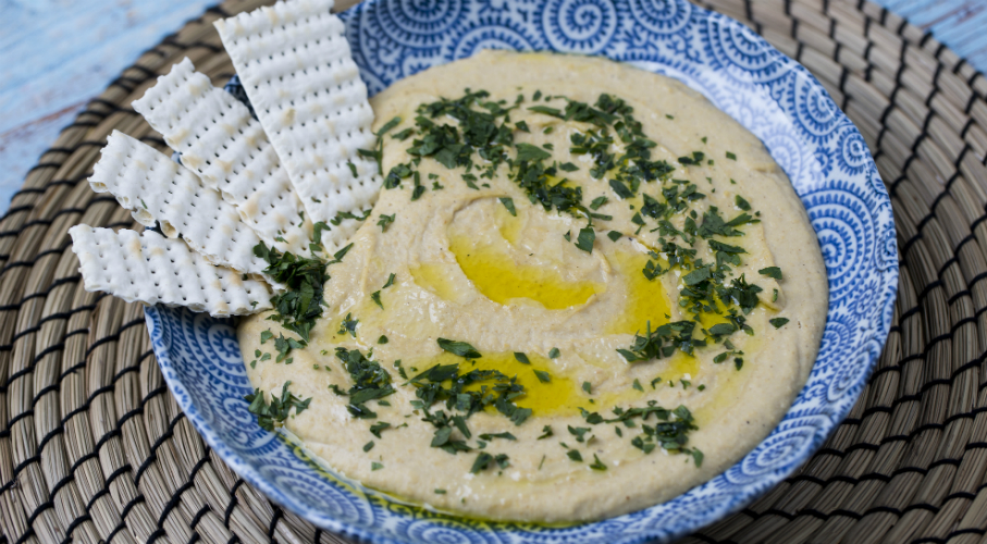 A hozzávalókat, a petrezselyem kivételével összepürésítjük egy botmixerrel. Vágott petrezselyemmel megszórva, olívaolajjal meglocsolva tálaljuk.