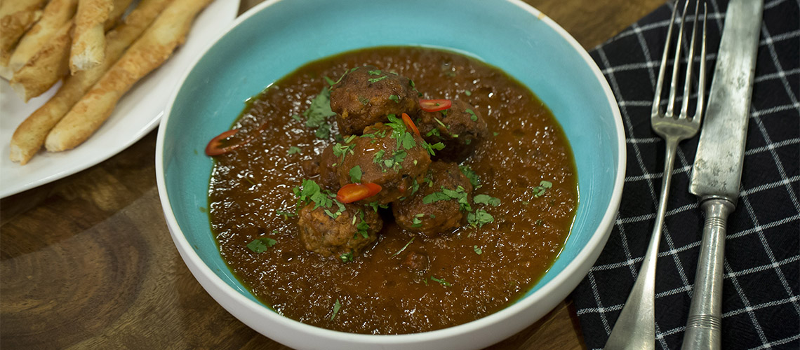 Húsgolyók sültpaprika-mártással