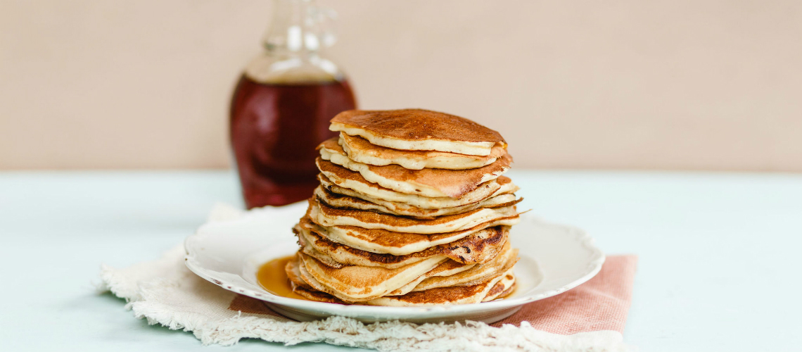 Palacsintasütő serpenyőben fél merőkanálnyi adagokból könnyű palacsintákat sütünk, mindegyik alá kevés vajat vagy olajat teszünk. Amikor mindkét oldalán megsült, tányérra szedjük és 40 fokra előmelegített sütőben fogyasztásig melegen tartjuk. Juharsziruppal tálaljuk.