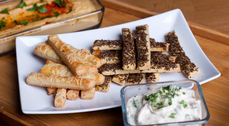 Tésztát gyúrunk az összetevőkből. Legalább fél órát hűtőben pihentetjük, majd kinyújtjuk. Tetejét megkenjük tojással és megszórjuk köménymaggal. Felvágjuk, majd tepsire rakjuk és kb. 15 perc alatt megsütjük.