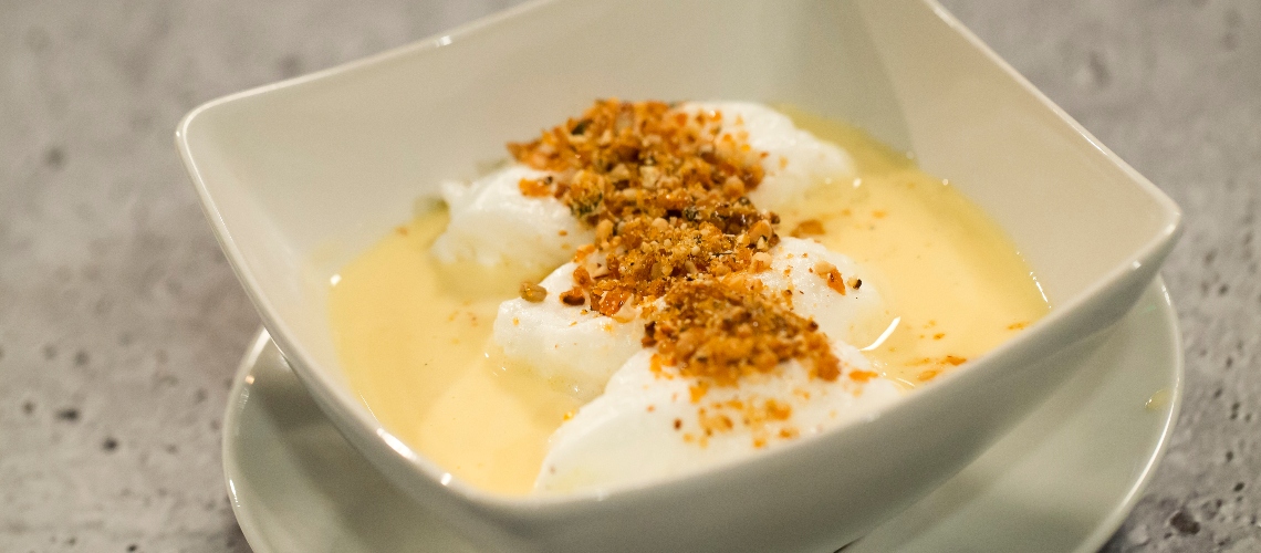 Alacsony lángon, folyamatosan kevergetve addig főzzük, amíg szépen be nem sűrűsödik, majd hagyjuk kihűlni. Tegyük a tetejére a galuskákat, és az egészet rakjuk be a hűtőbe legalább 2-3 órával azelőtt, hogy tálalni szeretnénk.