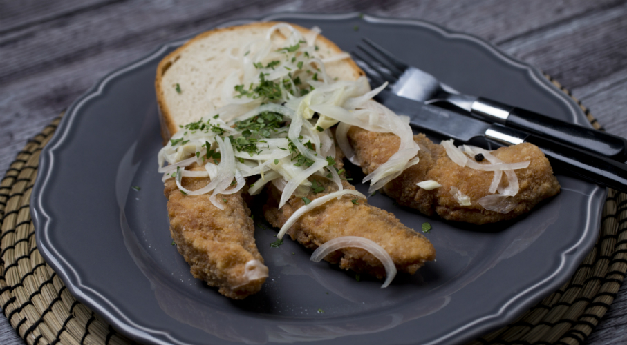 A pontyfilét irdaljuk, csíkozzuk, majd besózzuk. Lisztbe, tojásba, morzsába forgatva bepanírozzuk, majd bő forró olajban pirosra sütjük. Szegfűborsot, babérlevelet, egész borsot, ecetet és sót vízben kiforralunk, majd rászűrjük a vékonyra szeletekre vágott vöröshagymára. Hagyjuk kihűlni és ebbe tesszük a lehűtött rántott halszeleteket. Friss petrezselymet vágunk hozzá és kenyérrel tálaljuk.