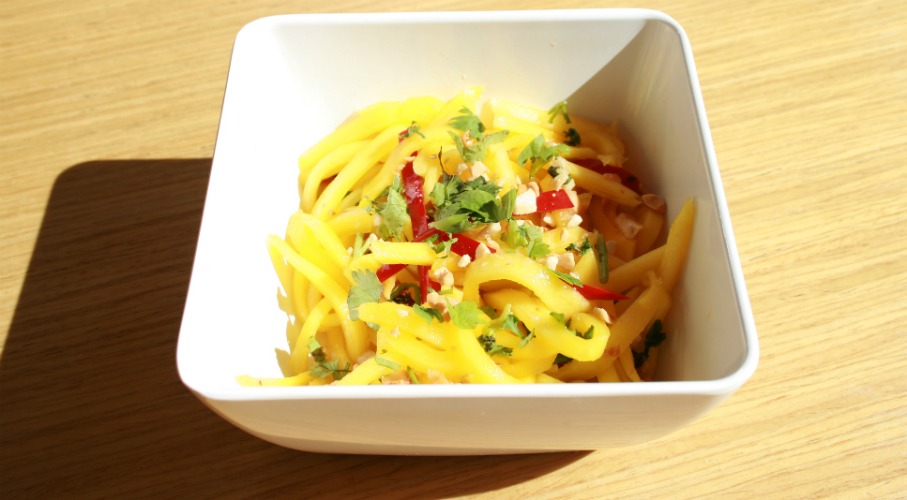 A hozzávalókat vékony csíkokra vágjuk. Egy kis tálban összekeverjük a mézet, a citromlét, a wasabit, az összetört pörkölt pisztáciát, és az olívaolajat, és a salátára öntjük. Szeletelt pisztáciával megszórjuk.A RECEPTEKÉRT KÖSZÖNET WANG QIANG-NAK ÉS A LANZHOU ÉTTEREMNEK.