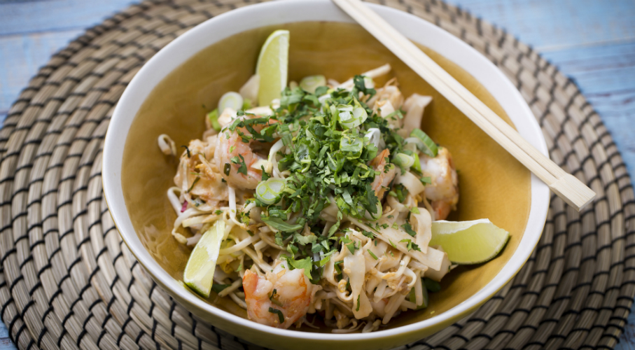A tésztát forró vízbe áztatjuk. A tamarind szószt kikeverjük a halszósszal és a barna cukorral. A zúzott fokhagymát kevés olajon aranybarnára pirítjuk.Rádobjuk a rákot és a darabolt chili paprikát, tovább sütjük. Hozzáütjük a tojásokat, néhány másodpercig sütjük, majd beletesszük a lecsöpögtetett tésztát és a darabolt snidlinget. Ezután következik a tamarindos, halszószos, cukros keverék, a vékony csíkokra vágott zeller és a mogyoró. Alaposan összeforgatjuk, belekeverjük a csírát, majd az apróra darabolt újhagyma felét. Tálaláskor az aprított korianderrel, a maradék újhagymával szórjuk és lime cikkekkel kínáljuk.