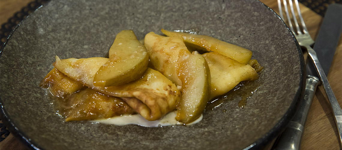 Palacsinta karamellizált körtemártással