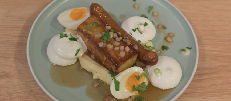 A salottát és a fokhagymát megtisztítjuk. A paprikát vékony szeletekre vágjuk, és a hagymával és a fokhagymával együtt puhára sütjük. Adjuk hozzá tört borókát és apróra vágott bazsalikomot: sózzuk, fűszerezzük, mézzel ízesítjük. A grapefruitlevet tegyük egy edénybe, és forraljuk fel. Oregánóval és a jégcsapretek zöldjével díszítjük. Az édesköményt vékony szeletekre vágjuk, megpirítjuk és narancs- meg grapefruitlével redukáljuk. Vajjal krémesítjük, mézzel és sóval ízesítjük.