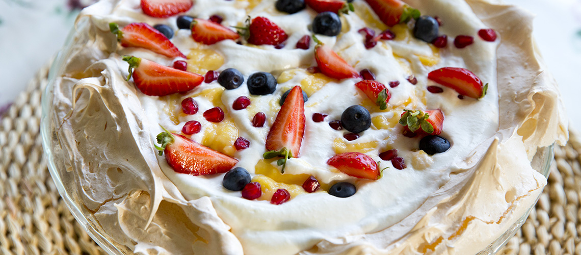 Díszítsük tejszínhabbal, citromtúróval és gyümölcsökkel.