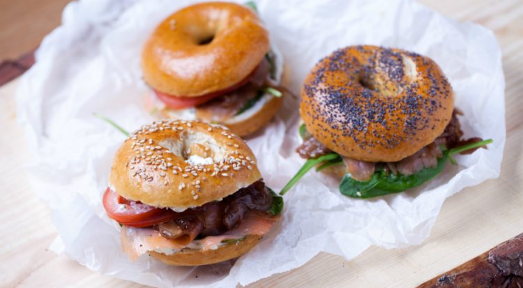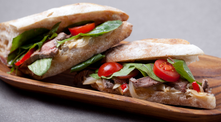 Első lépésben elkészítjük a sajtkrémet. A boltban vásárolt krémsajthoz hozzákeverünk egy evőkanál magos mustárt, sót és borsot, ízlés szerint fokhagymát. Elkeverjük, félretesszük. Eközben felmelegítünk egy serpenyőt, kevés vajat és olívaolajat teszünk bele, amin az előkészített, lehártyázott steaket elkezdjük sütni. A hús vastagságától függően, és nyilván ki hogy szereti, oldalanként 2-2 percig sütjük. Amikor már majdnem kész, egy nagyobb kocka vajat teszünk a hús mellé, egy gerezd fokhagyma és egy rozmaring ág kíséretében. A fűszeres vajjal párszor meglocsoljuk a húst. Majd a serpenyőből kivéve 5-8 percig pihentetjük. A friss bagettünket kettévágjuk, vastagon megkenjük a mustáros sajtkrémmel, teszünk bele paradicsomot és friss salátát, esetünkben bébispenótot. A húst felszeleteljük és a bagettbe töltjük. Tálaláskor kettévágjuk.