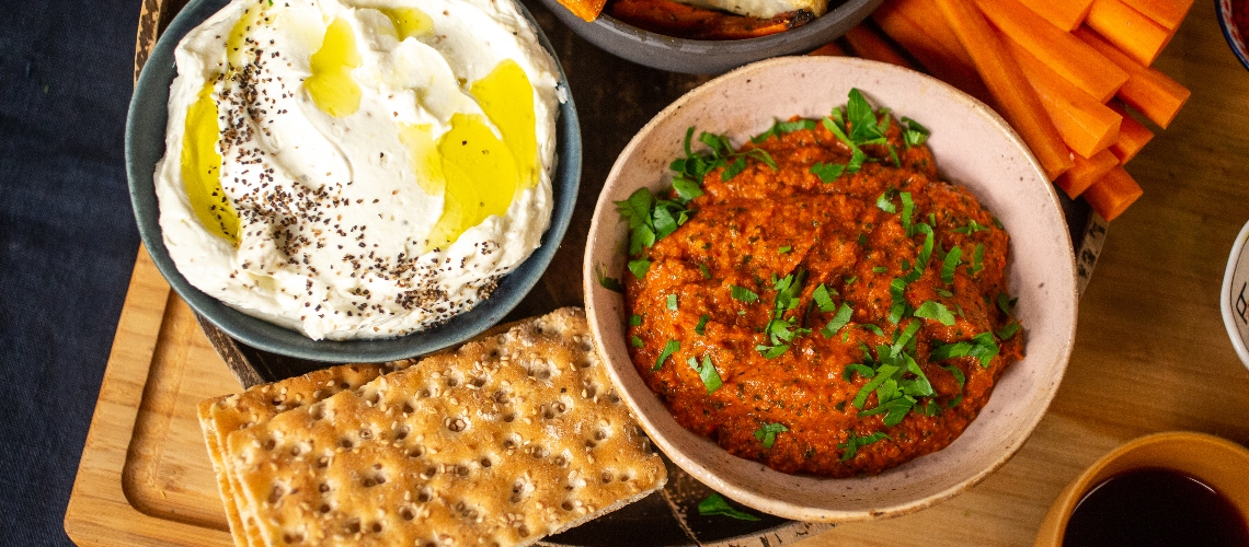 Romesco szósz és feta mártogatós