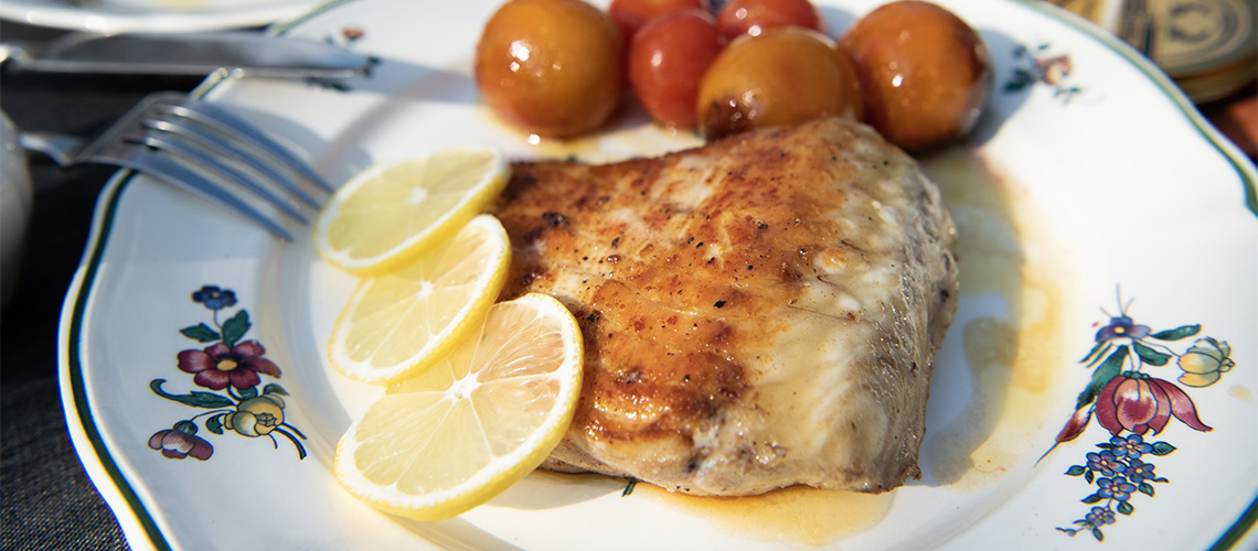 Tokhal filé citromvajas mártással és koktélparadicsommal