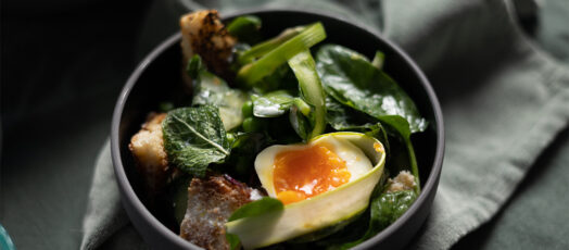 Tavaszi kenyérsaláta spárgával és mentával