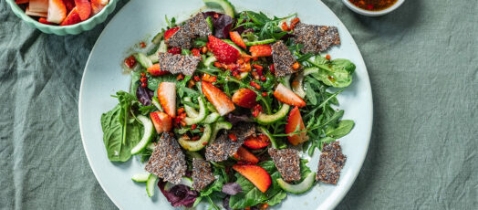 Eper, spenót saláta, lenmag ropogóssal