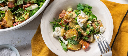 Újburgonya saláta fetával és zöldborsóval