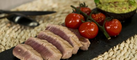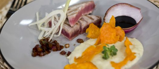 Vörös tonhal burgonyapürével és édesburgonya chipsszel