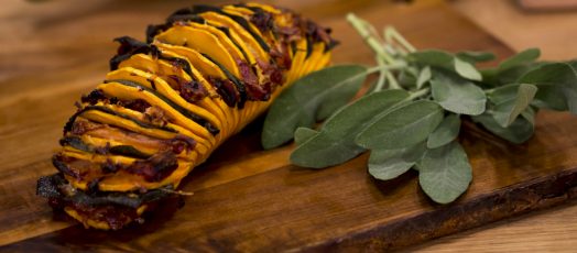 Sütőtök hasselback baconnal, zsályával