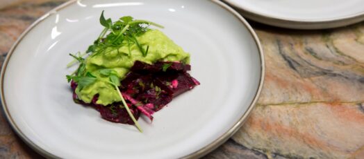 Zöldborsó hab diós céklával