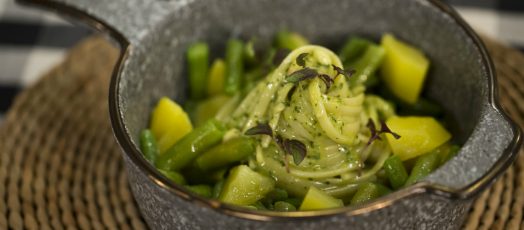 Ordával és sült padlizsánnal töltött paccheri tészta burattával