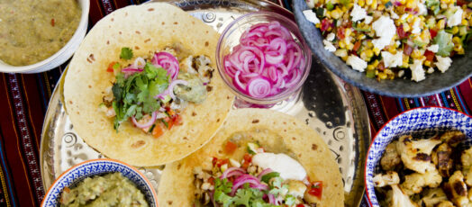 Sült karfiolos taco avokádókrémmel és csípős salsákkal