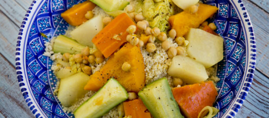 Kuszkusz fűszeres gyökérzöldség- és sütőtökraguval
