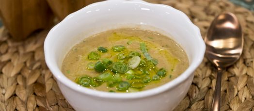 Vegán sajtkrémleves fehérbabbal, kukoricával