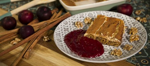 Sült diós-fahéjas palacsinta ricottával és szilva chutneyval