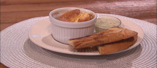 SAJTSZUFLÉ MUSTÁRMÁRTÁSSAL ÉS VAJBAN PIRULT PIRÍTÓSSAL