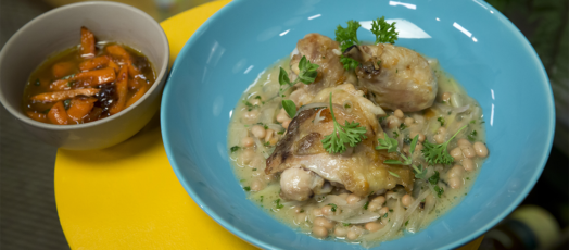 Párolt nyúlgerinc paprikaraguval, édesköménnyel és grépfrútos sárgabarack szósszal